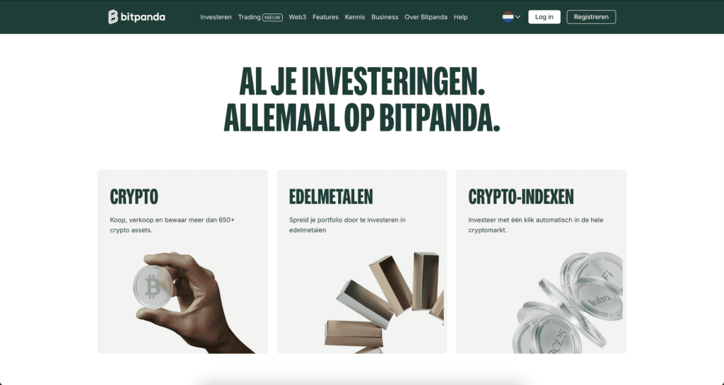 Bitpanda is een in Oostenrijk gevestigd crypto-platform dat zich profileert als broker en multi-asset aanbieder. Gebruikers kunnen er handelen in cryptovaluta, edelmetalen en digitale versies van aandelen en ETF’s. In tegenstelling tot klassieke crypto-exchanges werkt Bitpanda voornamelijk met vaste koop- en verkoopprijzen, waarbij de kosten zijn verwerkt in de koers.