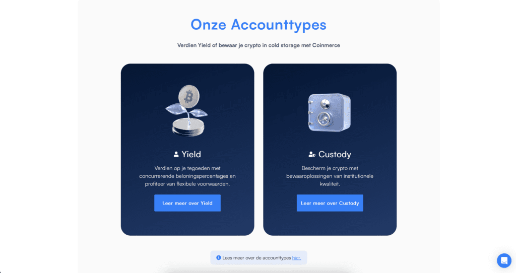 Coinmerce profileert zich met een breed aanbod aan crypto-assets. Op product- en kennisbankpagina’s wordt gesproken over honderden coins en er zijn specifieke overzichten voor staking-achtige pagina’s. Voor een koper is dit relevant omdat je met één account toegang houdt tot grote munten én long-tail altcoins, zonder te hoeven uitwijken naar internationale platforms.