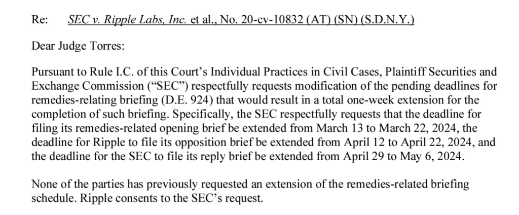 In de voortdurende juridische strijd tussen Ripple Labs en de Amerikaanse Securities and Exchange Commission (SEC) is een belangrijke deadline in zicht. Op 6 mei 2024 wordt verwacht dat de SEC haar repliek indient op Ripple’s verzet tegen de geëiste boetes van ongeveer $1,95 miljard. Dit juridische gevecht heeft niet alleen invloed op Ripple en zijn institutionele partners, maar ook op de bredere cryptomarkt, met name de handel in XRP.