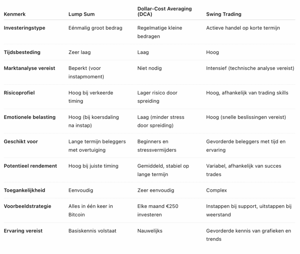 Ben je toch benieuwd naar andere strategieën? Lees dan verder over Lump Sum investeren, of ontdek of Swing Trading bij jouw profiel past. Zo kies je de aanpak die het beste aansluit op jouw doelen, kennis en risicotolerantie.