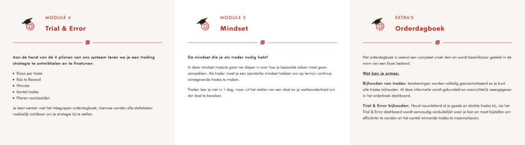 De cursussen van DoopieCash, waaronder “Traden doe je zo”, “Daytraden & Scalpen”, en het Platinum lidmaatschap, bieden een uitgebreid spectrum van kennis en vaardigheden voor zowel beginnende als gevorderde traders. Met een focus op praktische toepasbaarheid, interactieve coaching en een ondersteunende community, zijn deze programma’s ontworpen om traders succesvol te maken in verschillende trading stijlen. Ze bieden een waardevolle leerervaring, ongeacht iemands ervaringsniveau. Voor meer informatie, lees ook onze uitgebreide DoopieCash Cursus Review.