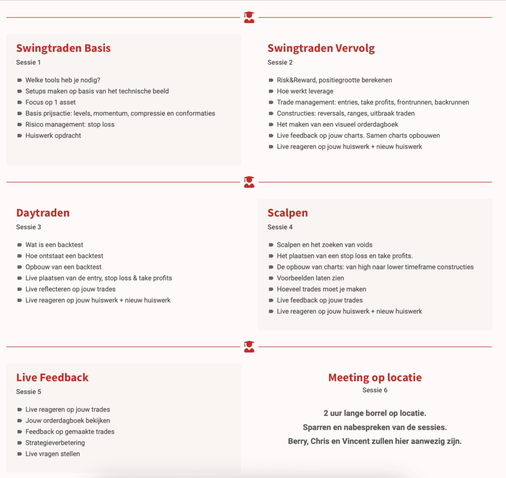 Het groepstraject “Traden doe je zo!” van DoopieCash is speciaal ontworpen voor zowel beginnende als vastgelopen traders. Onder leiding van Trading Coach Vincent Timmer biedt het programma zes interactieve coachingsessies, inclusief een afsluitende sessie op locatie. De sessies behandelen swingtraden, daytraden, scalpen en bieden live feedback, met een focus op praktische toepassing. Dit traject, compleet met huiswerk en persoonlijke aandacht, biedt deelnemers de kans om te leren van een ervaren trader en hun vaardigheden te verfijnen