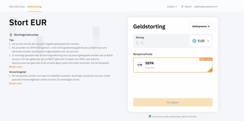 Na registratie en verificatie stort je geld op je account via een van de beschikbare betaalmethoden. Vervolgens kun je direct beginnen met het kopen en verkopen van crypto.