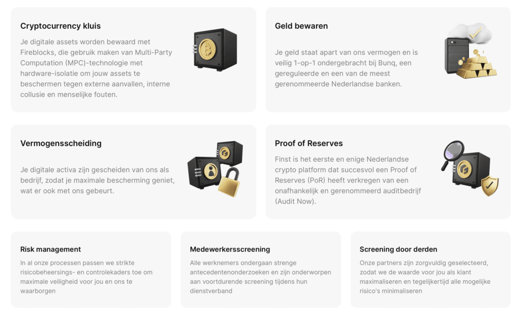 Finst onderscheidt zich door als eerste en enige Nederlandse crypto-exchange een uitgebreide Proof of Reserves vrij te geven, uitgevoerd door een gerenommeerd en onafhankelijk auditbedrijf. Dit bewijst dat Finst over de nodige reserves beschikt om aan de verplichtingen aan zijn gebruikers te voldoen, wat een extra laag van vertrouwen en transparantie toevoegt.