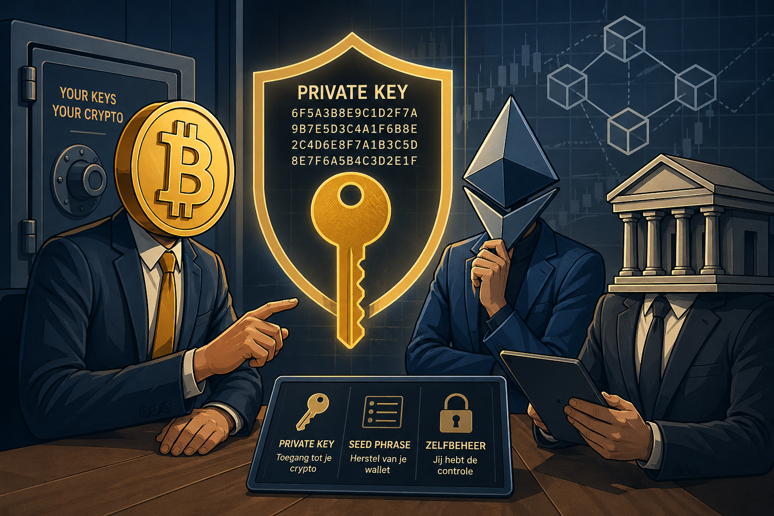 In de praktijk werken gebruikers meestal met wallets die het beheer van private keys vereenvoudigen via een seed phrase. Toch blijft het onderliggende principe hetzelfde: controle over crypto komt voort uit controle over sleutels.