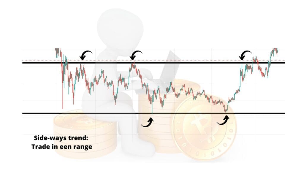 - Sideways trend: De koers beweegt zijwaarts zonder duidelijke richting.